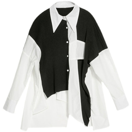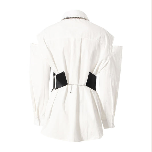 Contrast Color Chain Trendy Shirt Vest Two Piece