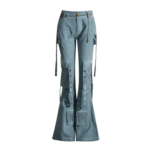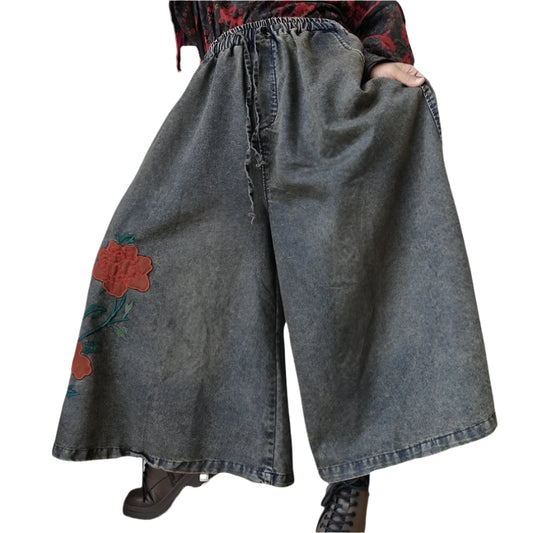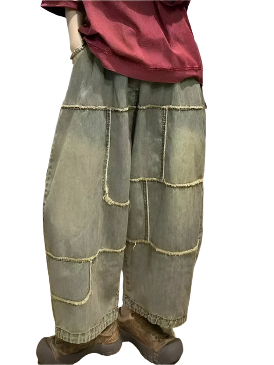 Patchwork Raw Edges Cropped Blue Wide Leg Pant