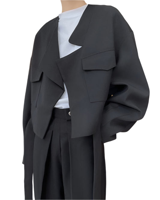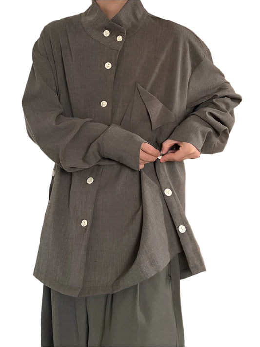 Cross Buttoned Long Sleeve Loose Fit Shirt