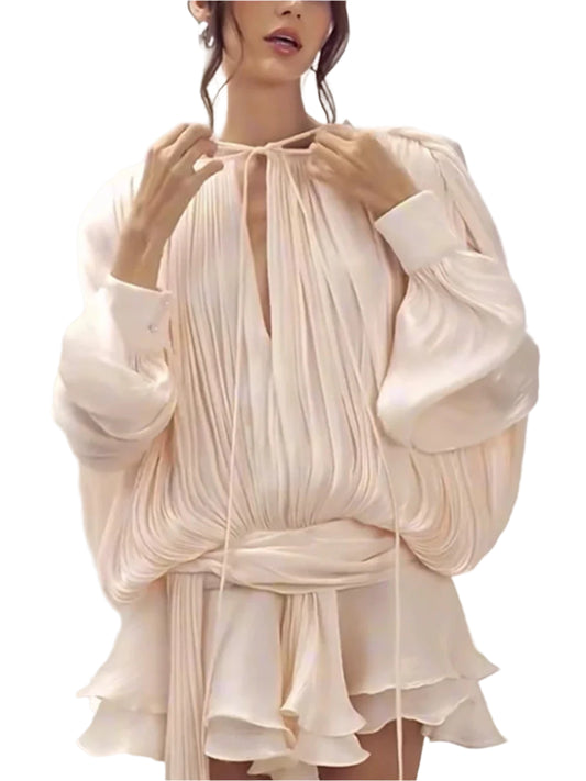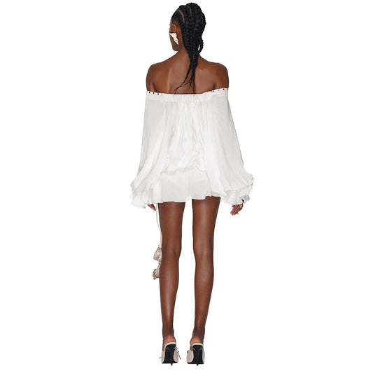 Loose Lace Up Off Shoulder Long Sleeves Mesh Mini Dress