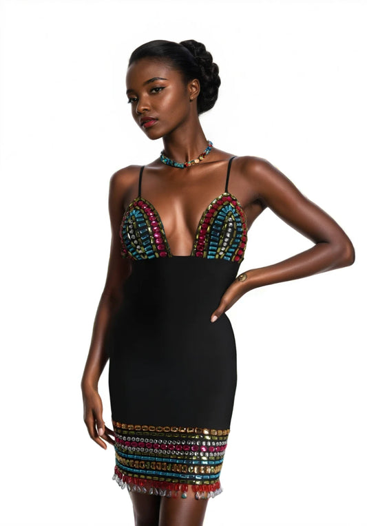 Stand Collar Sleeveless Patchwork Appliques Dress