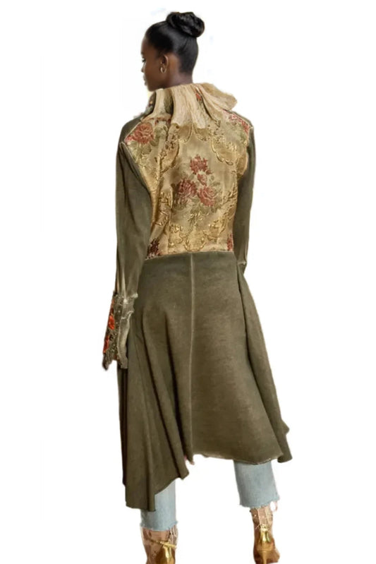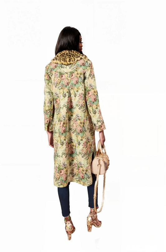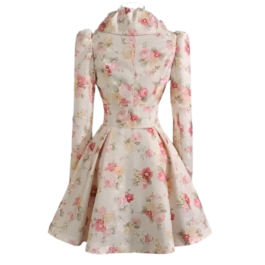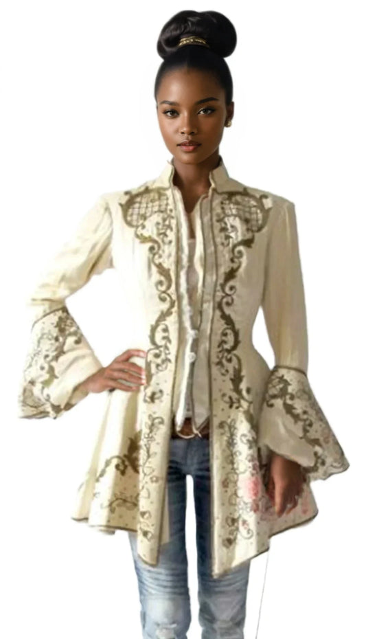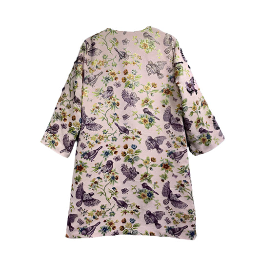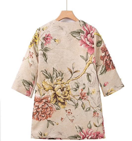 Beading Jacquard Three Quarter Sleeves Flower Print Coat