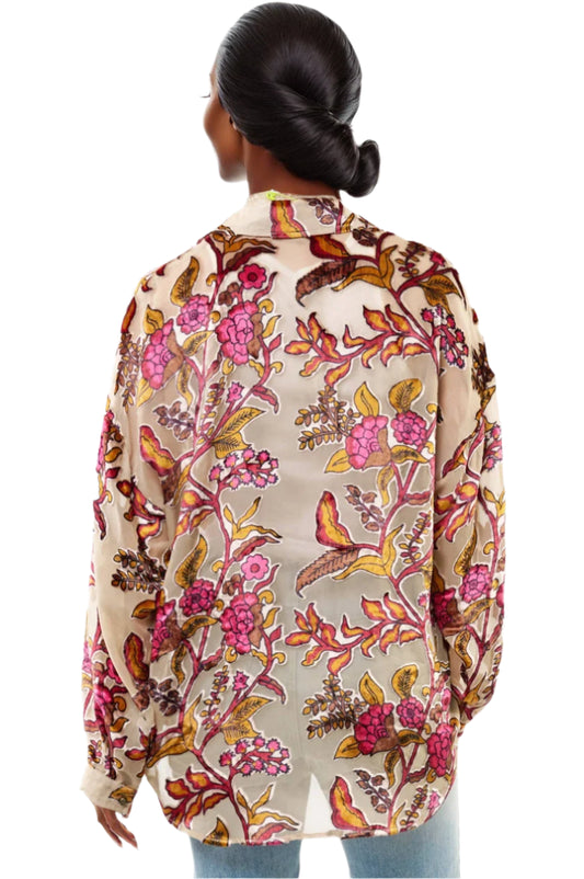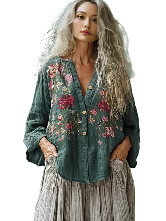 Floral Printed V-Neck Long Sleeve Bohemian Blouse