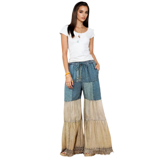 Preorder: Boho-Inspired Long Denim Pants with Solid Patches