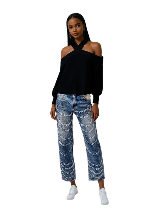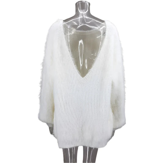 Backless Knitted Long Lantern Sleeve Oversized Sweater