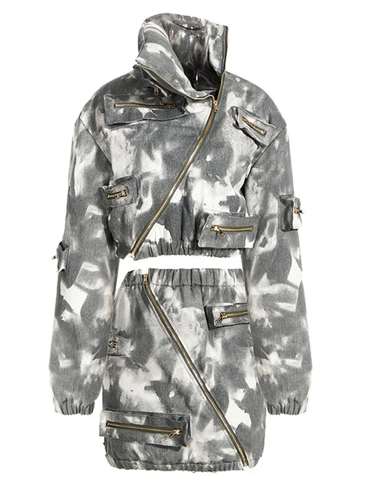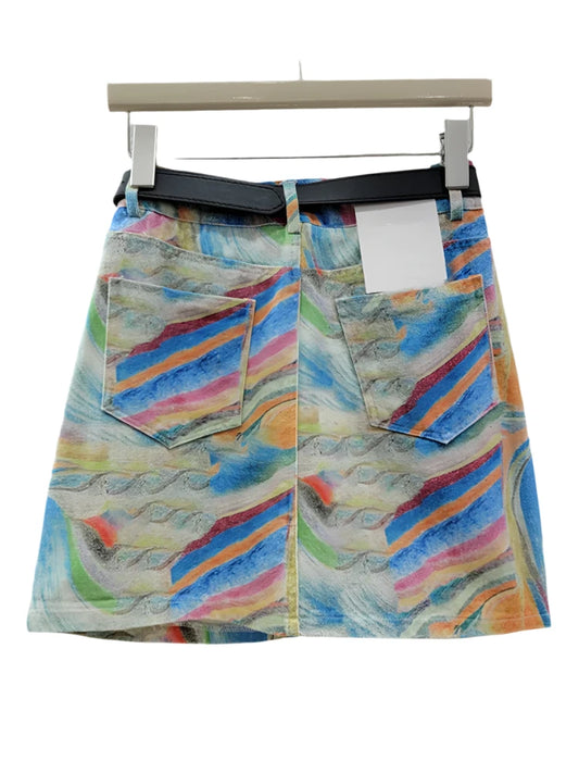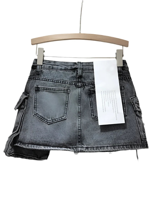 Denim Hand-Painted Graffiti Letters Cargo Short Mini Skirt