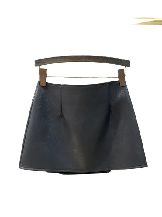 Pu Leather Irregular Zippers A-line High Waist Mini Short Skirt