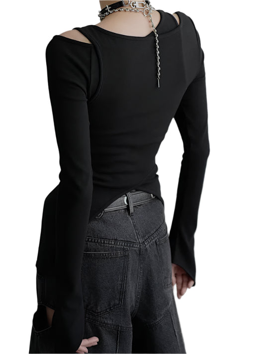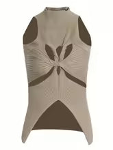 Knitted Turtleneck Sleeveless Irregular Hem Tank Top