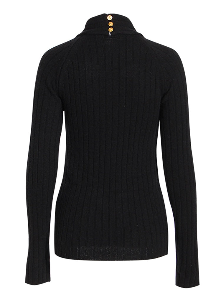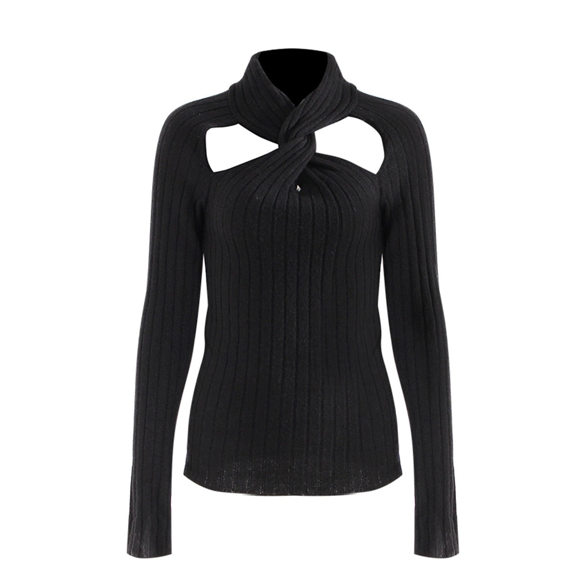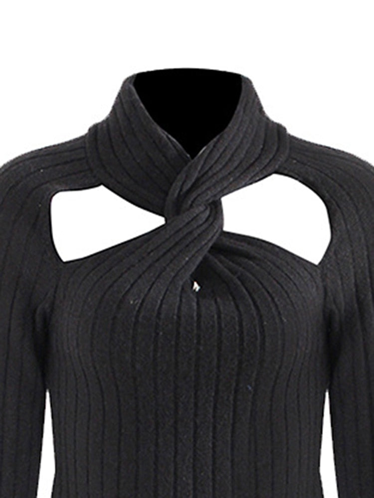 Black Knitted Pullover Long Sleeve Cut Out Sweater