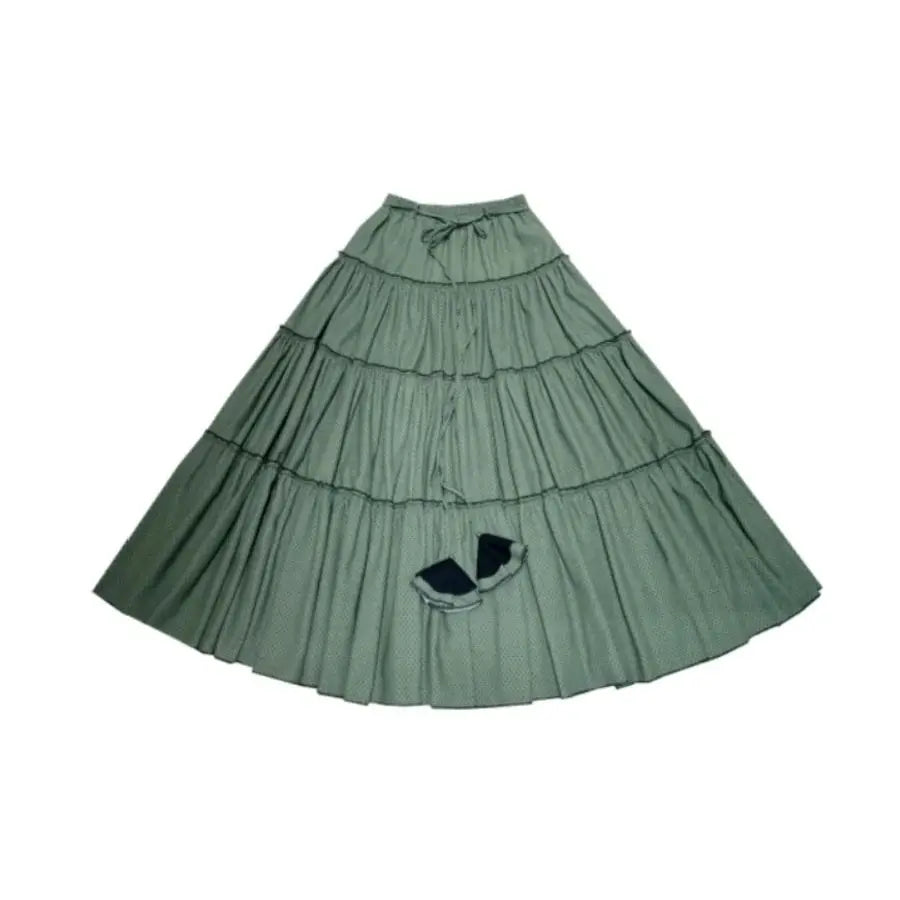 Cotton Thick Elastic Waist A-Line Printed Green Skirt