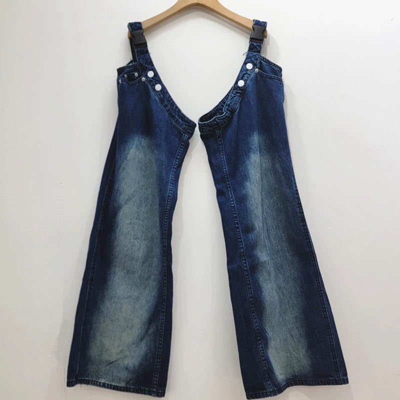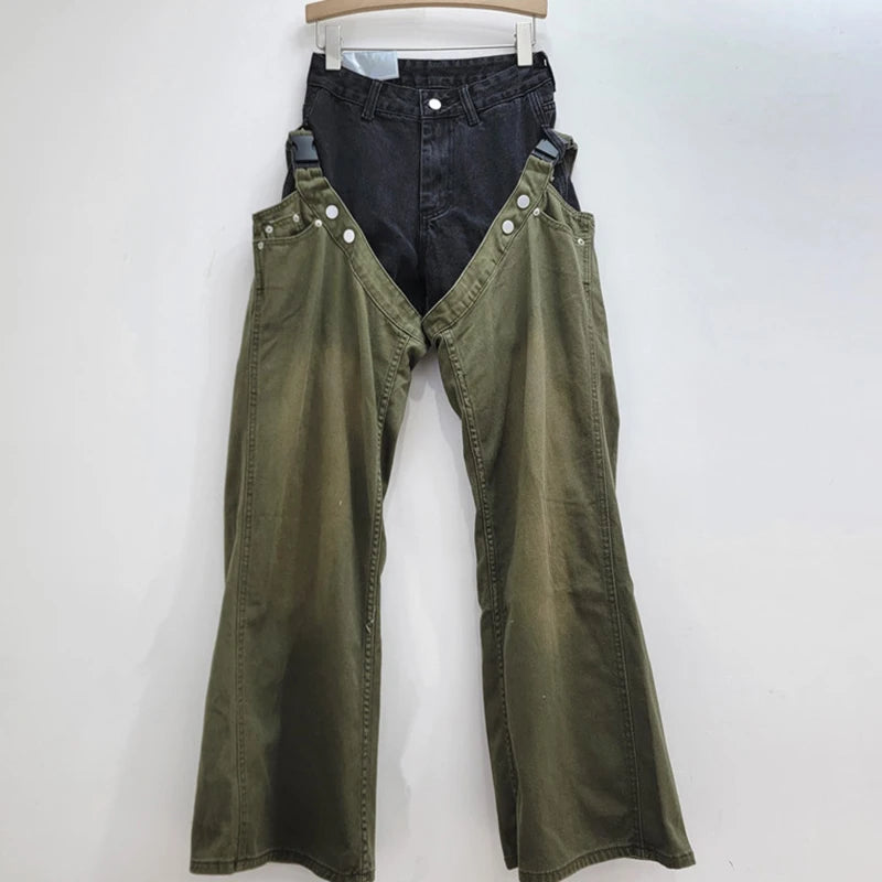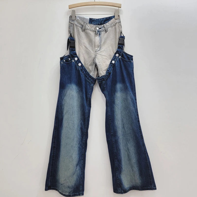Denim Pants Patchwork 2 Pcs Set Washed Straight Jeans