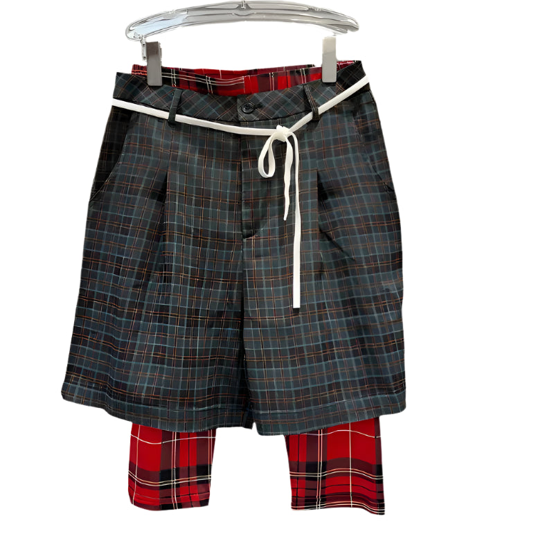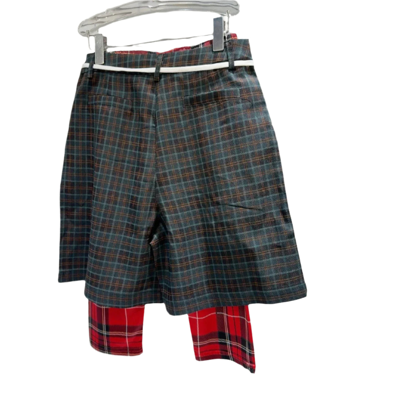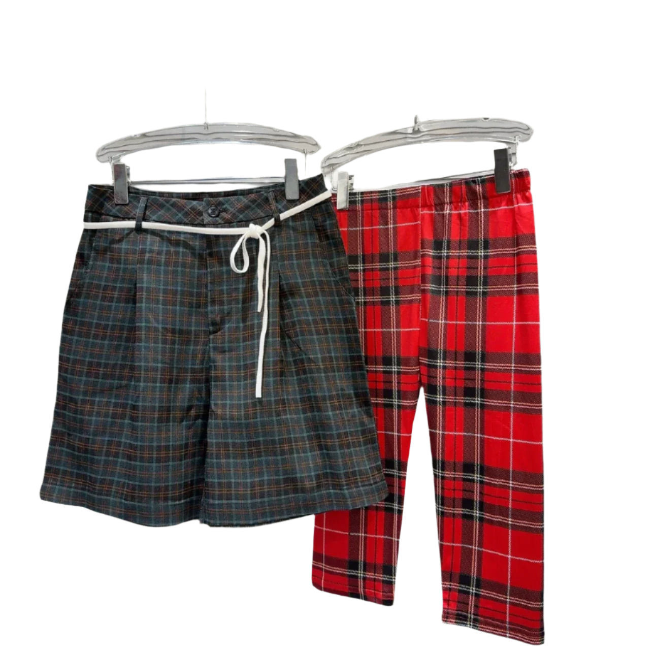 Knee Length Drawstring Plaid Pants Two Piece Set