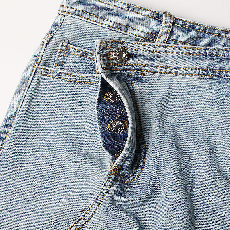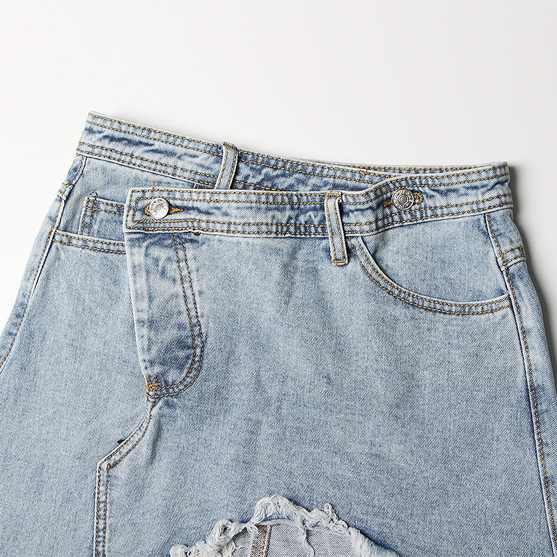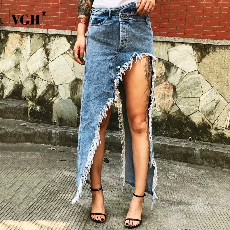 Women's Mid-length Irregular Split Frayed Denim Skirt