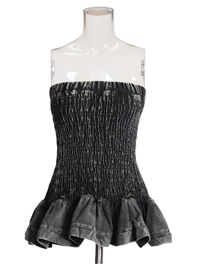 Denim Strapless Sleeveless Blouse