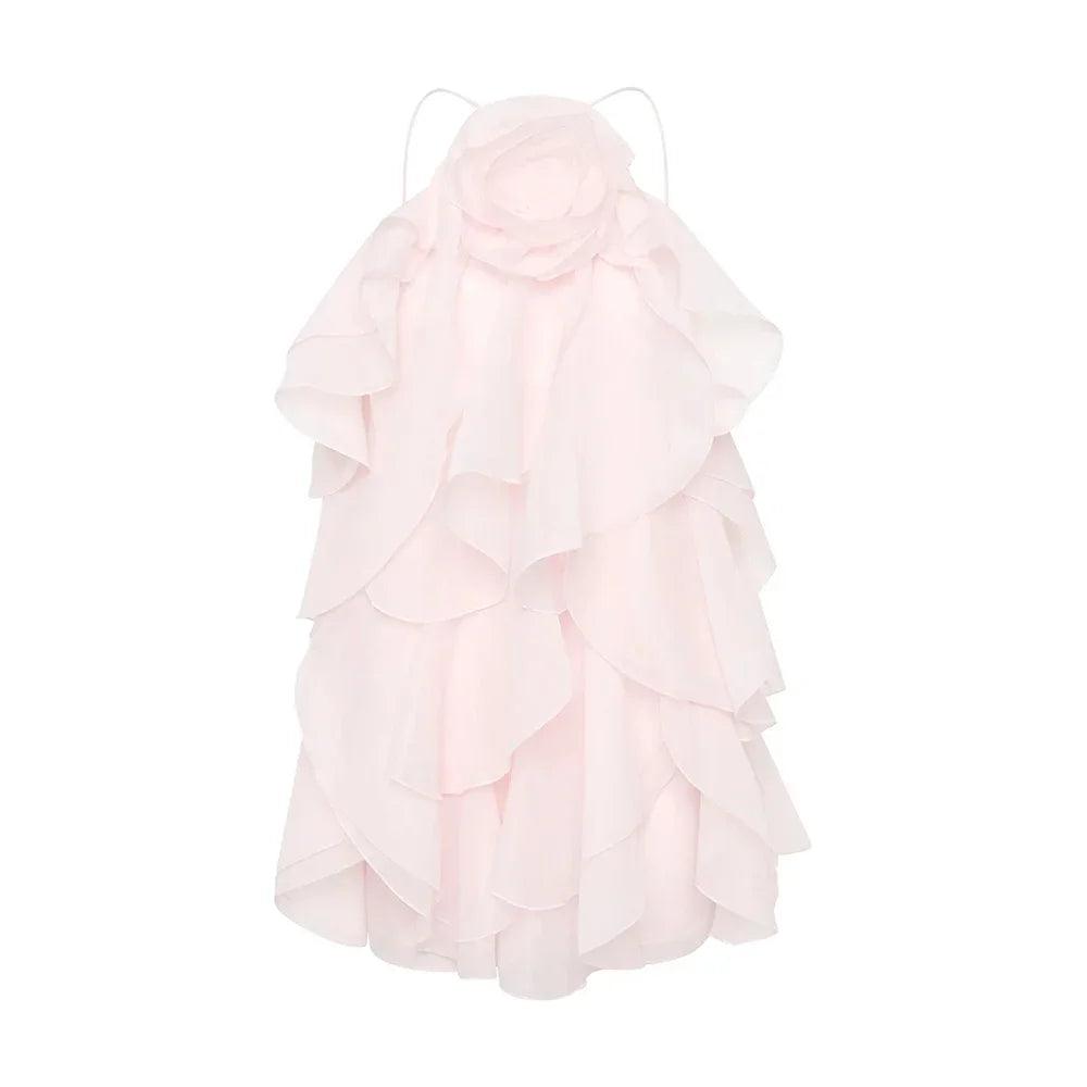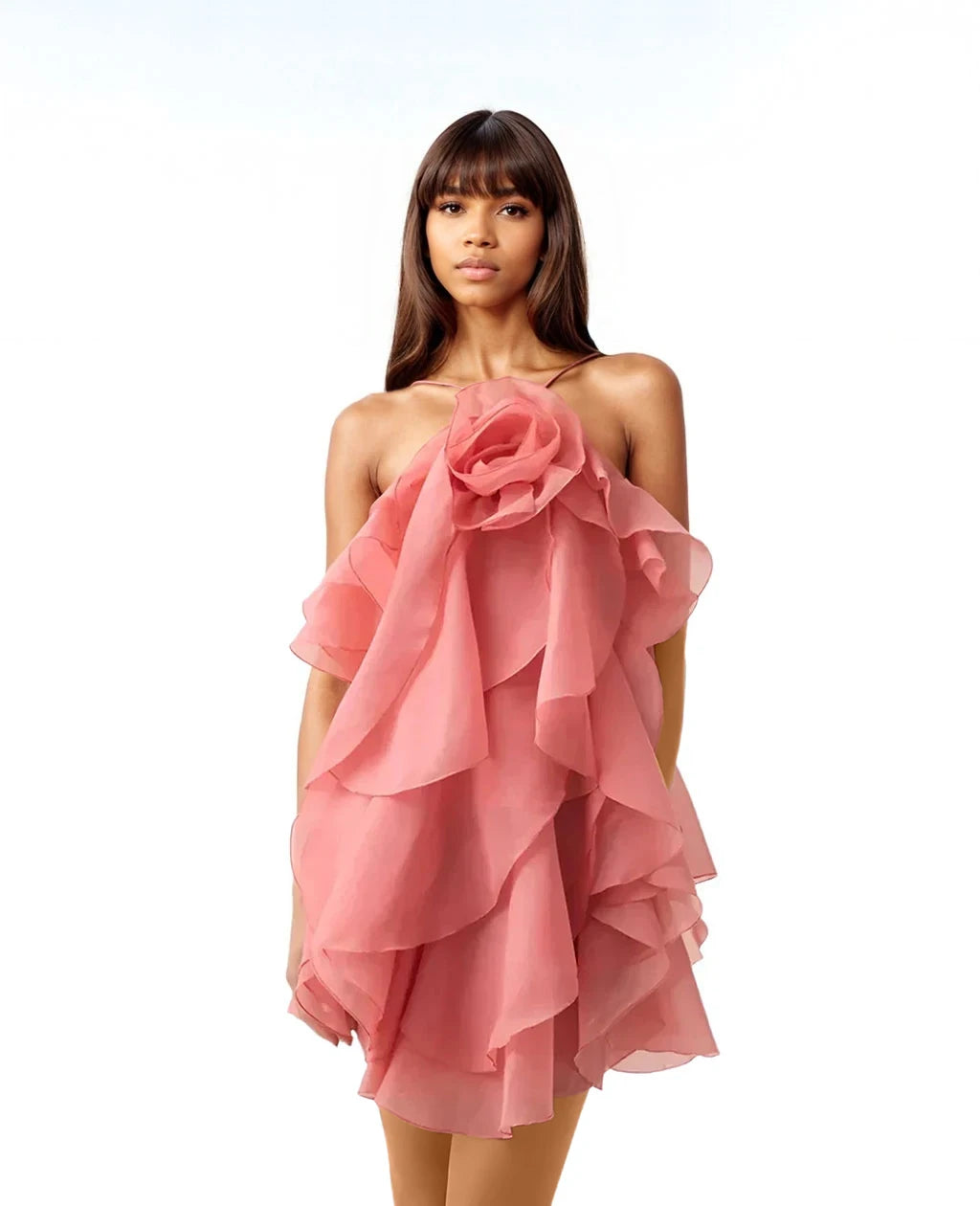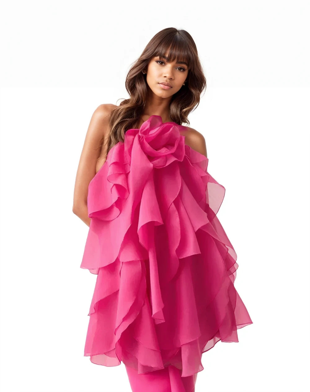 Ruffles Strapless Sleeveless 3D Flower Dress