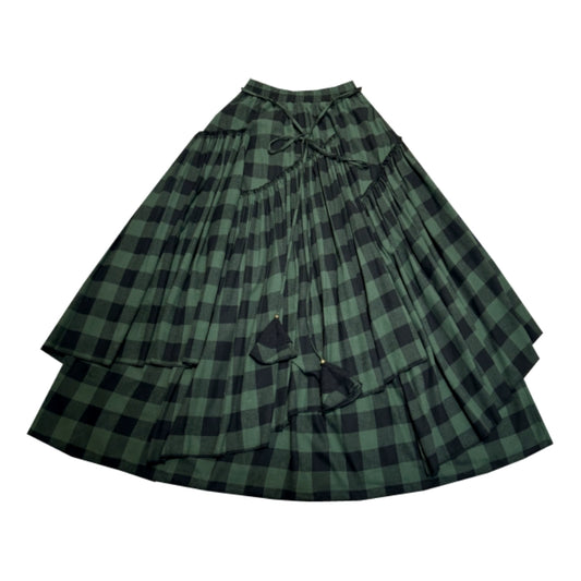 Cotton Thick Elastic Waist A-Line Plaid Green Skirt