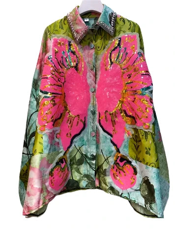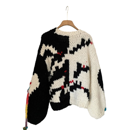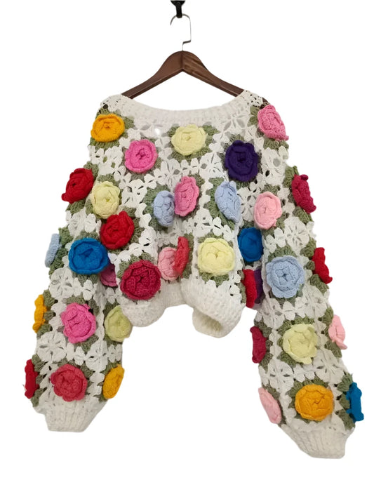 Hand Knit Boho Crochet Rose Long Sleeve Cropped Sweater