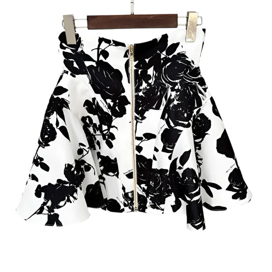 Waist Rose Printed Metal Buckle Printed Zipper Mini Skirt