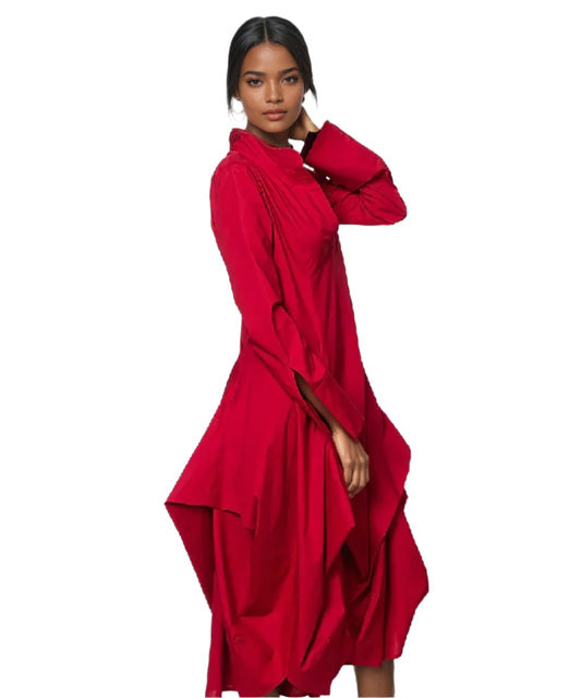 Elastic Waist Red Plaid Mesh Irregular Long Casual Half-body Skirt