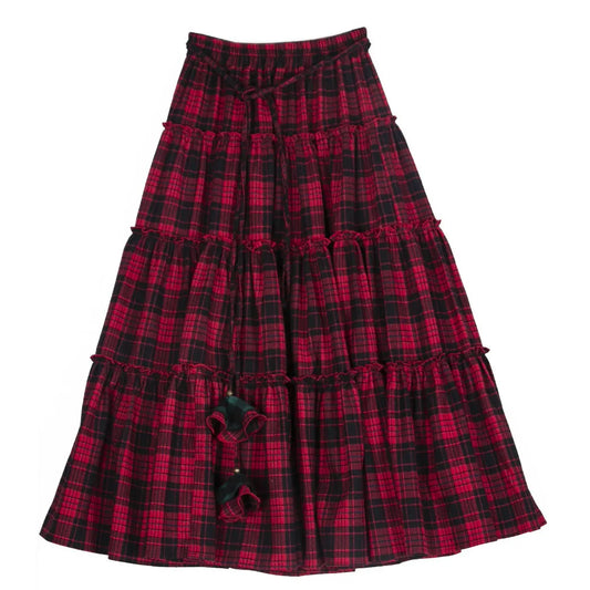 Cotton Skirts Plaid A-line Elastic Waist Irregular Skirt