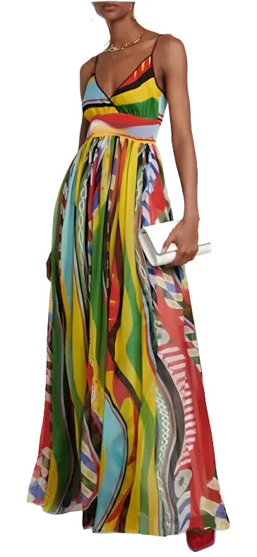Printed Denim Suspender Vest + Wide Leg Pants Set