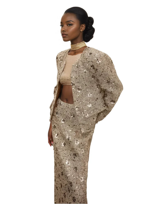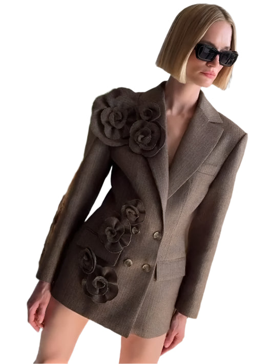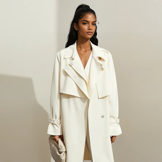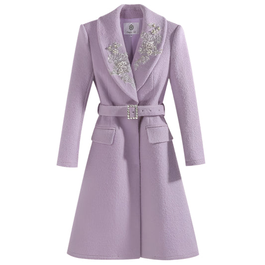 Fine Wool Double-Buttoned Bead Embroidery Long Coat