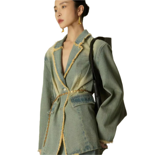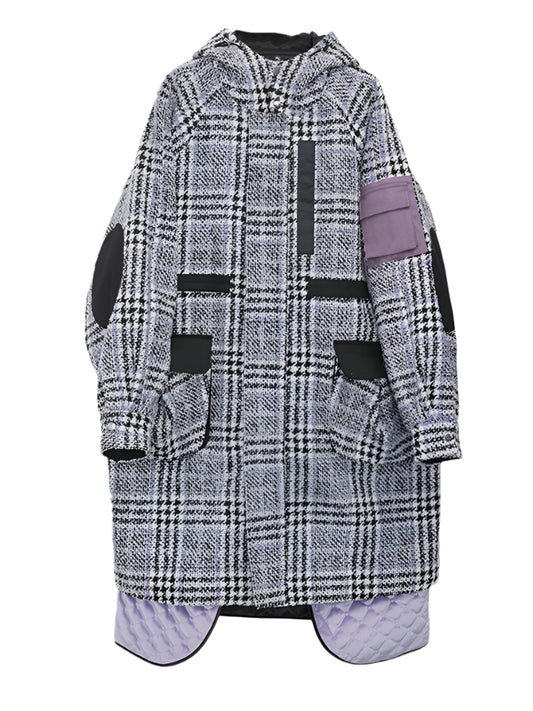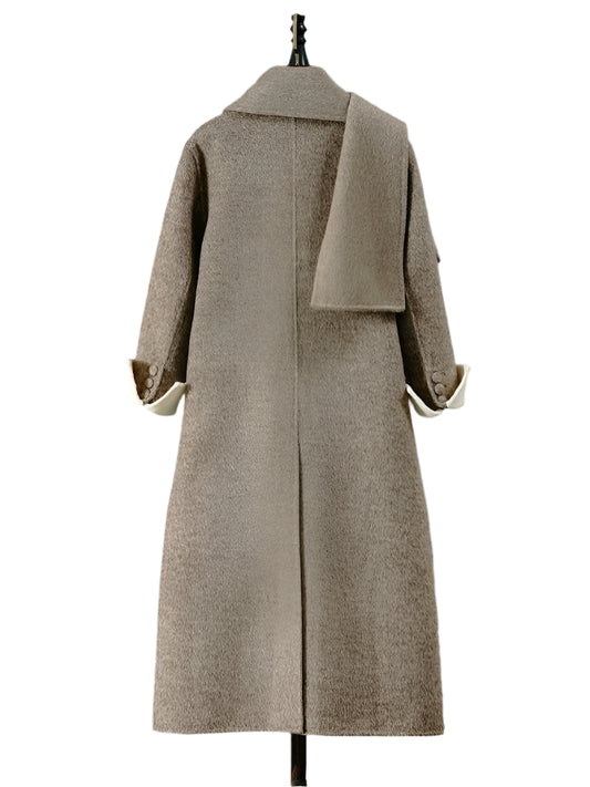 Irregular Wool Patchwork Mid Length Stitching Coats With Scarf