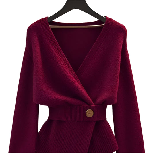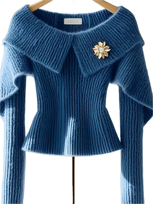 Elegant Slim Fit Knit Asymmetrical Lapel Sweater Pullover