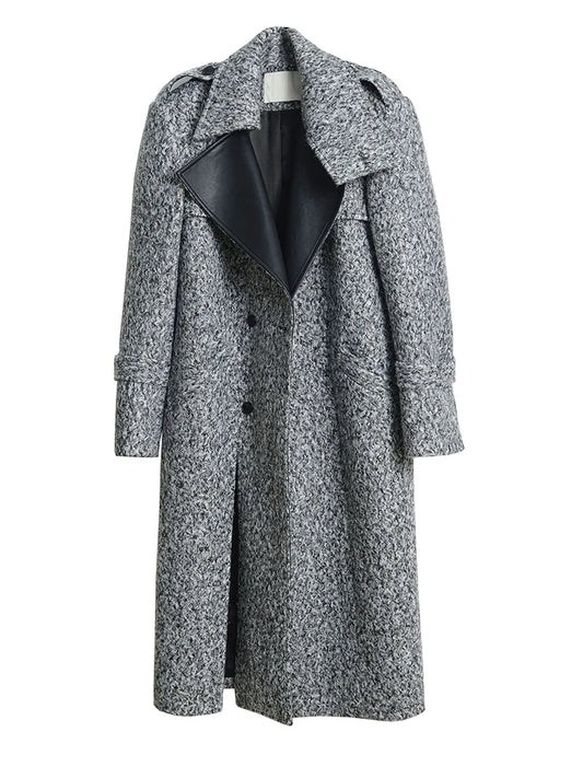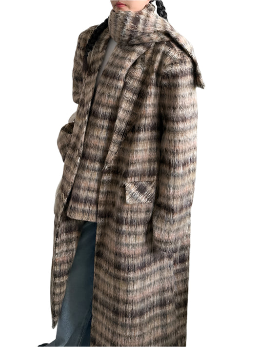 Khaki Big Size Thick Warm Wool Scarf Collar Coat