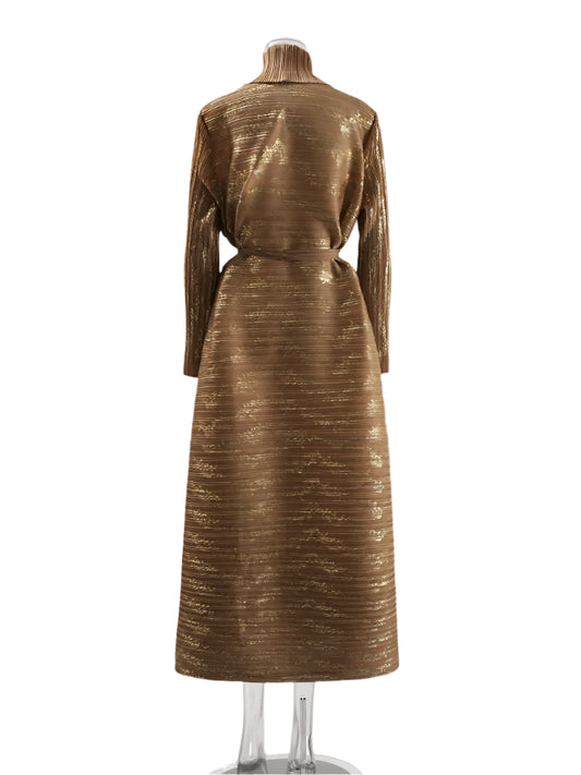 Pleated 3D Flower Long Windbreaker Trench Coat