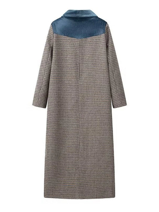 Colorblock Plaid Long Sleeve Pockets Long Jacket