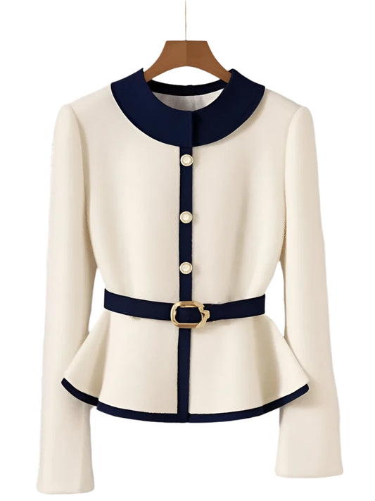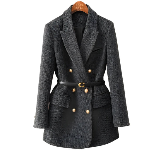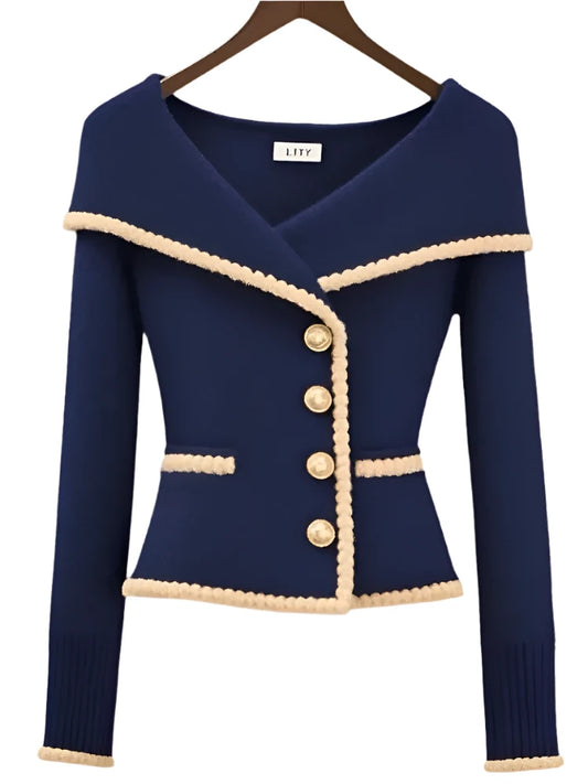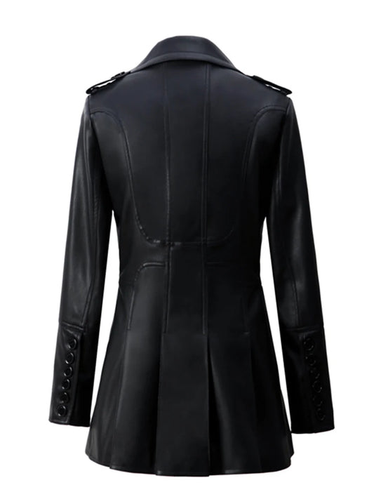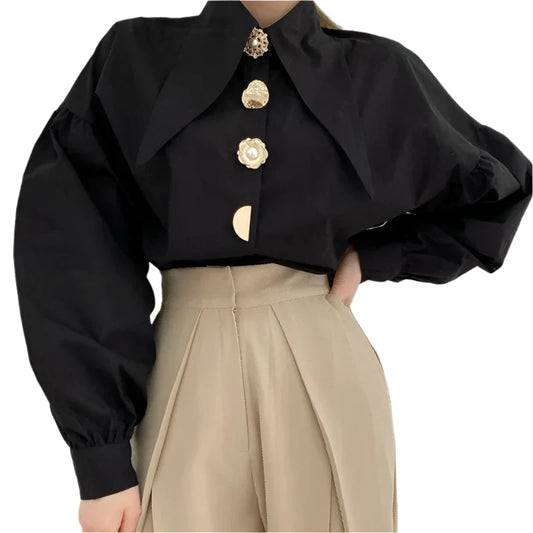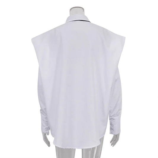 Lapel Tie Long Sleeve Broad Shoulder Pocket Blouse