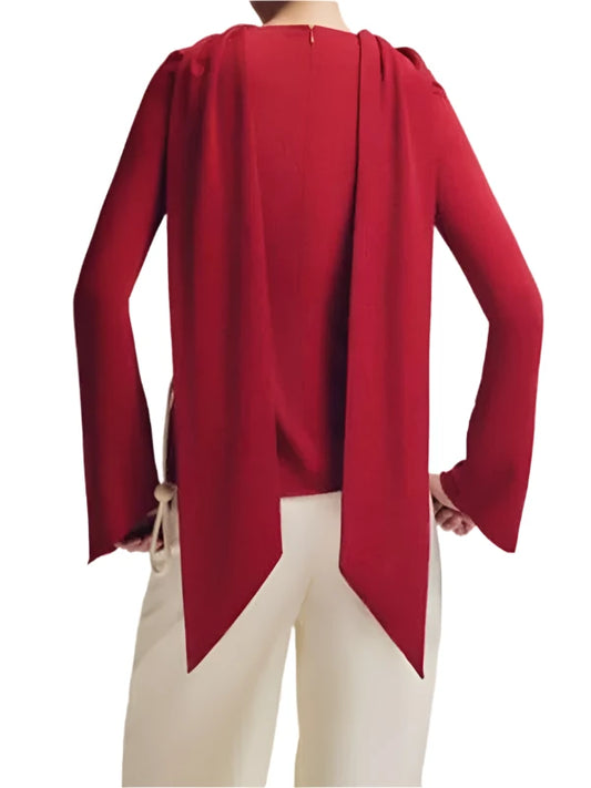 Solid Pullover Flared Sleeves Zipper Boat Neck Blouse