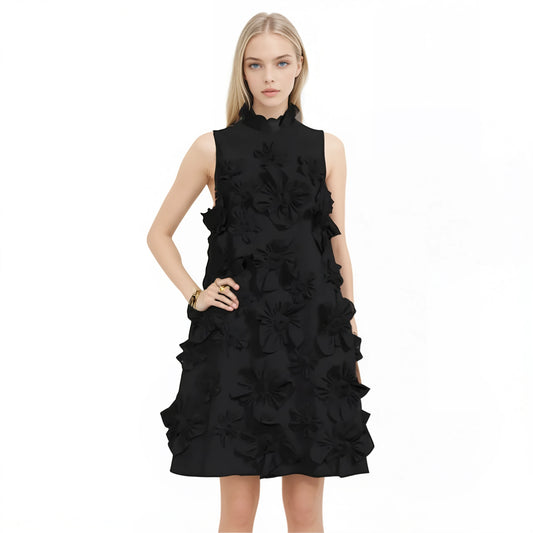 Stand Collar Sleeveless Patchwork Appliques Dress