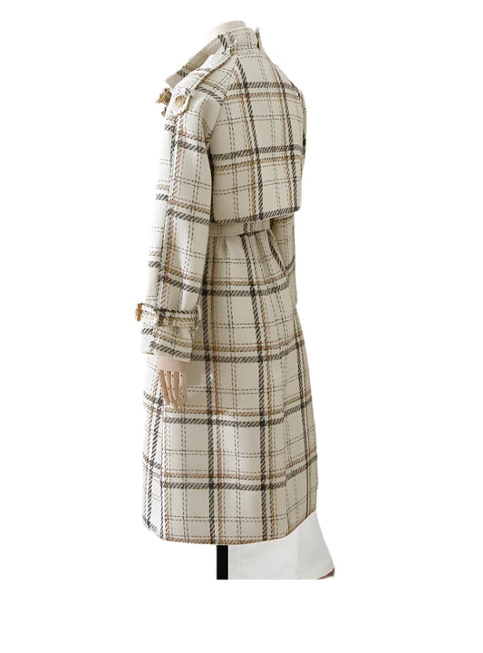 Long Plaid Wool Raglan Sleeve Belt Double Breasted Trench