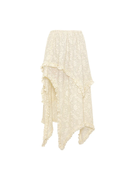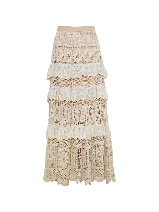 French Lace Crochet Knitted Tiered-Ruffle Skirt