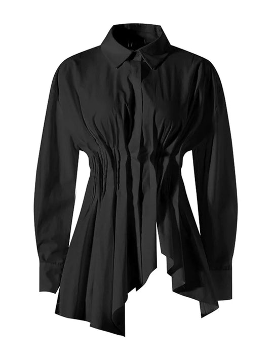 Covered Button Folids Irregular Fish -Tail Hem Blouse