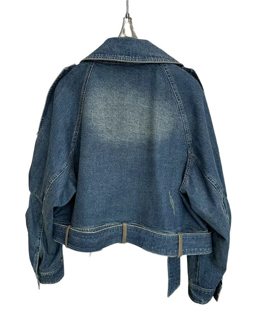 Denim Turn-down Collar Long Sleeve Button Buckle Jacket