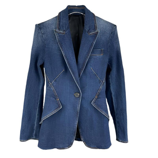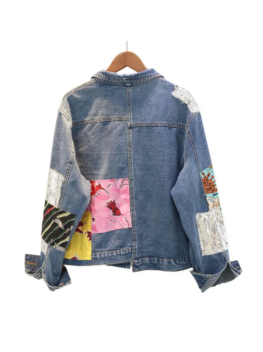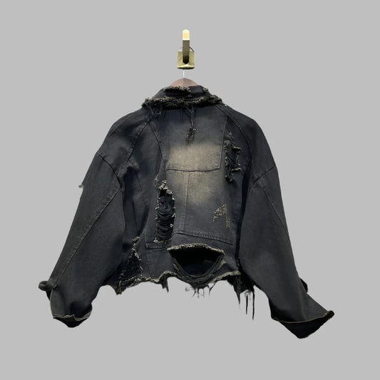 Denim Distressed Hand Frayed Patch Short Coat Jacket