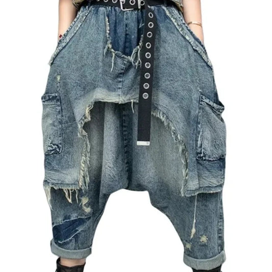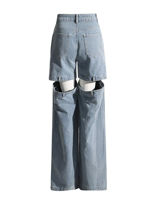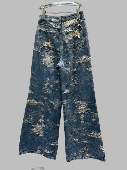High Waist Broken Holes Distressed Wide Leg Denim Pants