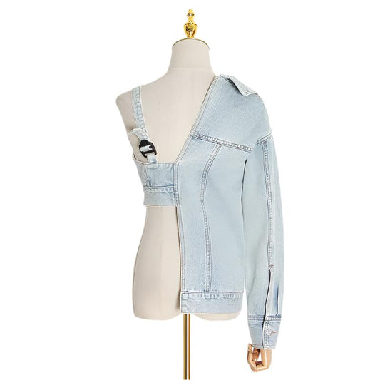 Denim Asymmetry Zipper Long Sleeve Short Jacket