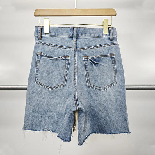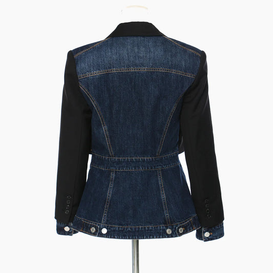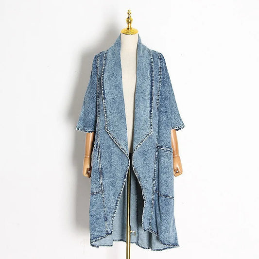 Denim Three Quarter Sleeve Long Blue Denim Coat