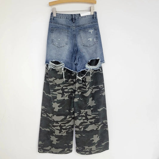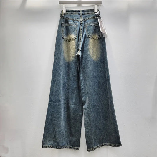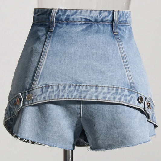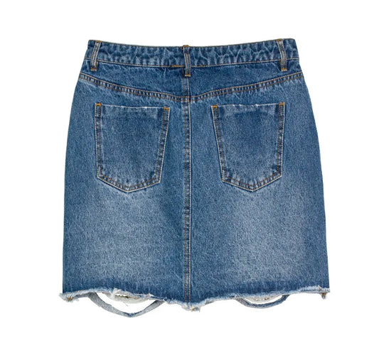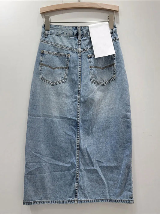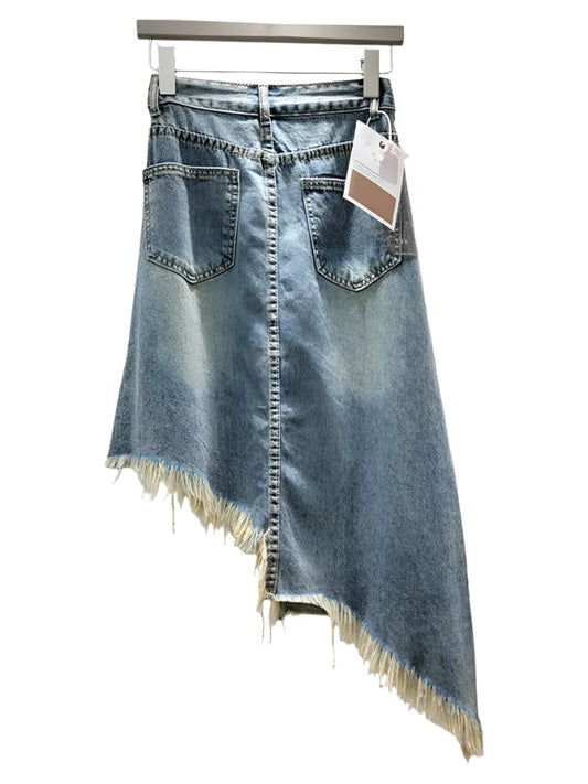 Denim Skirt High Waist Asymmetric A-line Long Skirt