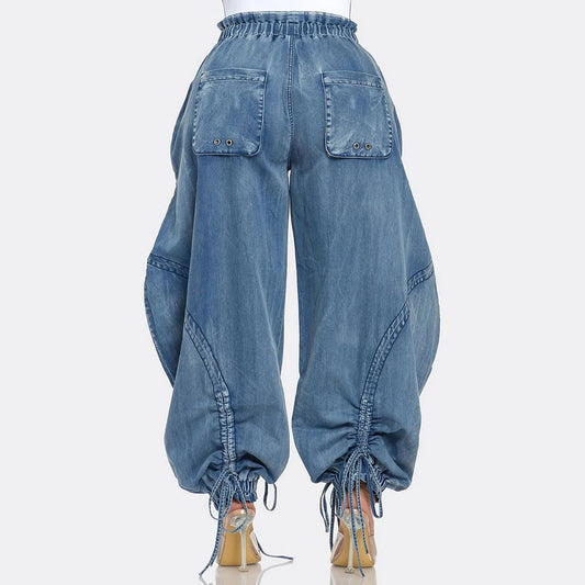 Round Circle Sleeveless Cut Out Backless Denim Dress