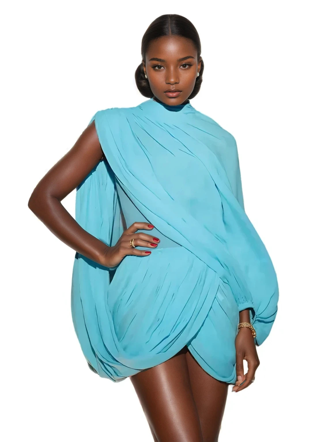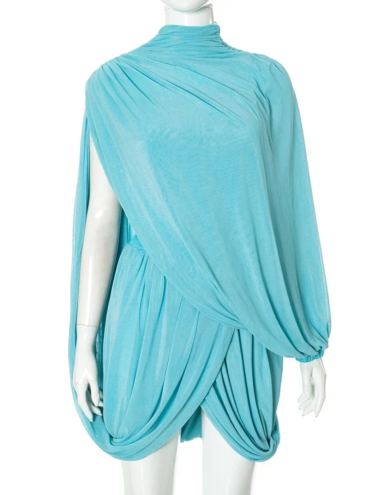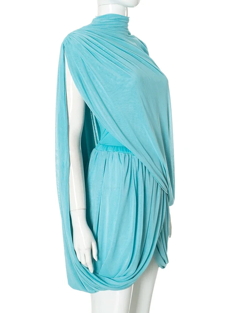 2 Piece Set Strapless Shawl Vest Crop Tops + Irregular Pleats Skirts