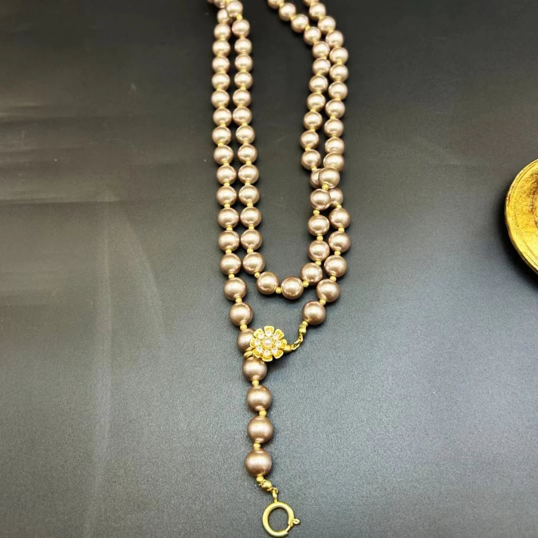 Mid-Ancient Champagne Baroque Style Pearl Short Necklace